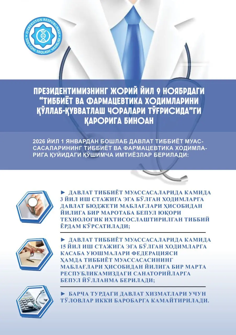 Farmonga ko’ra, atmosfera havosining PM 2.5 zarralari bilan ifloslanish manbalarini aniqlash uchun atmosfera havosini chuqur o’rganishga qaratilgan maxsus laboratoriya tashkil qilinadi. 2026 yil bahor hamda kuz mavsumlarida Toshkent shahrining 33 km uzunligidagi kichik halqa yo’li bo’ylab “yashil koridor” loyihasi amalga oshiriladi. 2026 yil 1 aprelgacha “yashil Toshkent” master rejasi ishlab chiqiladi. Toshkent shahrining barcha tumanlarida …